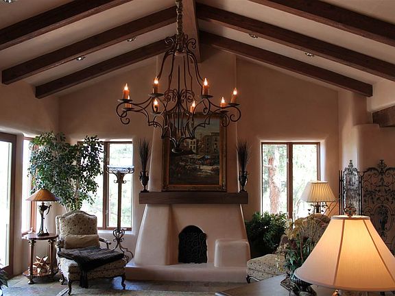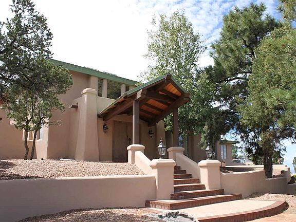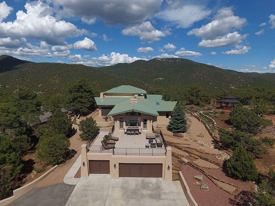 This pristine 3 bedroom retreat is perched at close to 8,000' and provides a level of privacy and drama rarely seen in Santa Fe. You access the double gated property via paved roads, ascending to overwhelming views in all directions to a property that is comprised of 9.5 acres. The impeccable 6,262 square foot home features a gorgeous and fully equipped kitchen and very dramatic living and entertaining areas. The plush master suite is on the main level and the 2 guest bedrooms and bathroom share the private top floor. There is also a large office and fitness room on the lowest level, along with the 3 vehicle garage. Sophisticated details include slate floors, dramatic ceilings, hand crafted doors, elegant fireplaces, and picture windows throughout. There is a lighted gazebo providing for 360 degree views including city lights, sunset vistas, mountain ranges and forest. For the outdoor enthusiast, you'll have a hiking and biking trail network at your doorstep.