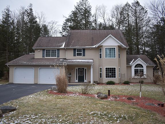 Perfect primary / Vacation home with plenty of room for the whole family,large family room with gas(propane) fireplace ,modern kitchen - center island. Formal living room and dining room too! There is also a master bedroom with a master bath on 1st floor and 1/2 bath too. 2nd floor features a 2nd master bedroom with bath suite,2 more bedrooms and another full bath. But there is even more! There is a large unfinished 3rd floor that would make the perfect ''man cave'' playroom,office or another bedroom .2 car garage. Greenwood Acres has a 30 acre lake for swimming and fishing. It is so close to Big Boulder/jack Frost ski areas ,Split Rock,Lake Harmony and 2 great golf courses. I 80 is 2 miles away & PA turnpike 7 miles which makes it a short trip to NY & Phila. Call for your showing to
