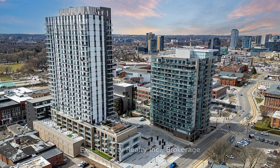 Just nominated for "City of Kitchener 's Great Places" and "People's Choice Award"!Welcome to upscale urban living at its finest in this stunning 2-bedroom, 2-bathroom corner unit on the 13th floor of the sought-after Young Condos in downtown Kitchener. Flooded with natural light and showcasing breathtaking panoramic views, this meticulously upgraded suite offers a unique blend of elegance, comfort, and functionality. Step inside to discover a thoughtfully designed open-concept layout featuring high-end finishes throughout. The heart of the home is a custom kitchen island with gleaming quartz countertops, perfect for entertaining . The kitchen is equipped with premium stainless steel appliances, a Culligan water filtration system, and built-in furniture that enhances both style and storage. Both bedrooms are generously sized, with the primary bedroom featuring a private ensuite. An in-suite washer and dryer add everyday convenience. Additional highlights include:one underground parking spot, private storage locker and bike rack access. Young Condos offers an array of modern amenities, including a fitness center, separate yoga room, rooftop terrace with BBQ, resident lounge, and more all in a vibrant, walkable location near shopping, restaurants, the LRT, Google and Victoria Park. This is not just a condo its a lifestyle.