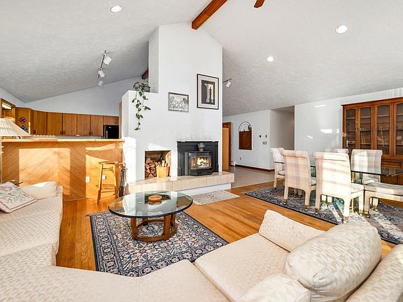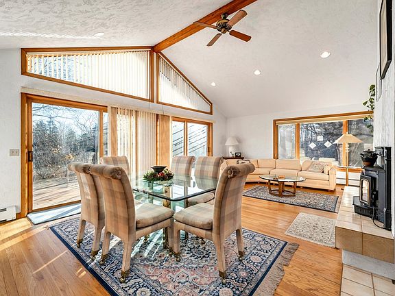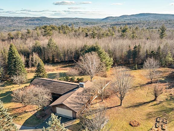 This bright and sunny home has a welcoming feel from the moment you open the front door. The open floor plan and vaulted ceilings allow for views in every direction; facing southeast, the sunshine can be enjoyed all day. The living room features a floor-to-ceiling fireplace to cozy up to in the winter. The spacious custom kitchen offers plenty of room for a kitchen table or island, 2 ovens and a large cabinet with electricity to house your appliances. A hallway leads to the primary suite, another bedroom, an office, an extra room and a hideaway laundry. At the end of the hall is a large bonus room with outdoor access to a deck and the backyard; with the adjacent bedroom and bath it could be a self-contained suite. There is a full walkout basement that currently has one finished room and offers potential for much more. This home sits on 8 beautiful acres with a 2-car garage and a separate detached 1-car garage. Across the street are views of the gorgeous Ossipee Mountains. Located just 15 minutes from all Wolfeboro amenities, this is a solid home in a lovely setting - cosmetic updates will make it your own.