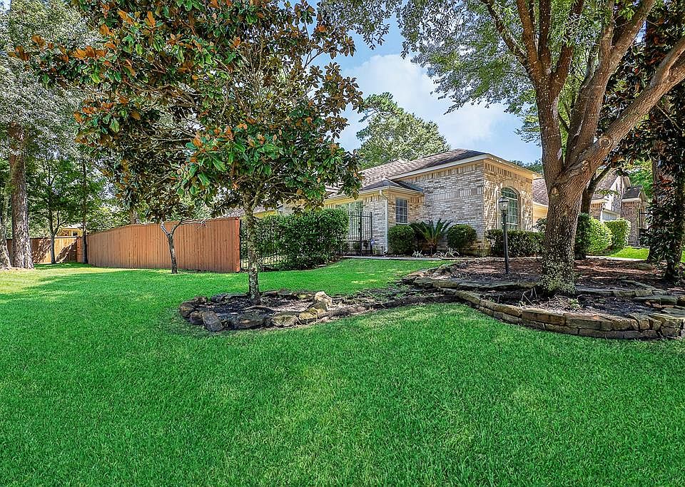 Charming 1 story home nestled on an over sized corner lot. Extensive seamless wood floors, dining room, sun room or exercise room, formal living or study. Large living area. Rich kitchen cabinets, stainless appliances, granite counter tops, raised dishwasher, plenty of cabinet space & center island. Large master suite with ensuite bath, separate shower and tub. High ceilings, lots of natural light. Huge utility room, built-in sound system, 8 KW generator, covered back patio, flagstone walk ways, security system, sprinkler system and fully fenced back yard with fig tree. Wonderful location convenient to shopping, schools, parks & hospitals. Recent HVAC.