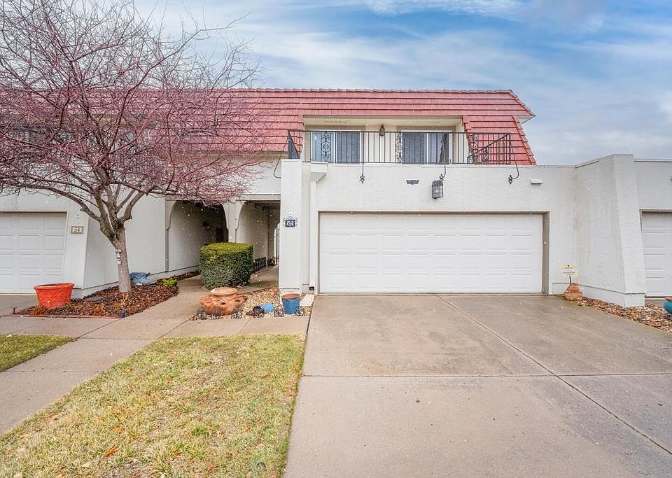 Condo life awaits....Highly sought Crestview Villa on South course #6 fairway of Crestview golf course available now! Loaded with charm of the SW including hand carved art and doors, hand painted tiles and hand punched tin. Beamed ceilings that will make you never want to leave! Kitchen dining room and living room all nestled together with a wood burning fireplace and large windows to enjoy the view of the course and the pond. Beautiful built in cabinets with hand carved doors from New Mexico in the dining area. Main office with wet bar and powder room also on the main floor. Upstairs features a huge primary bedroom adorned with wood cabinets (additional shelves are in the basement) and sitting area with private balcony. Bathroom has 2 walk in closets and a Sauna (currently non functional). Upper level mechanical room has room for extra storage (fridge does not remain). Second bedroom has a lovely bathroom, loads of storage and closet space, private roof top area over garage and a sitting room. The basement has a smaller sitting area (which could be made larger if you wish to forgo one of the two bedrooms). One bedroom is a suite style, it has a door in the family room which leads into the hallway with multiple closets and the private bathroom entry before entering the bedroom (so closets are not in the bedroom, in the hall leading to the bedroom) and a view out window. The second bedroom also with private bath currently does not have any flooring (flooring was removed by the previous owner). If you desire a larger family room and don't need 4 bedrooms, the family room wall can be eliminated into the bedroom creating a much larger space like many other units. Don't miss out on this 4 bedroom 4.5 bath. Neighborhood pool and fun events such as the 4th of July gathering with decorated golf carts. Walk or cart to the Country club for dinner or happy hour! (additional dues apply for level of membership). If you have ever wanted to live in the Crestview Mile, your opportunity has arrived!! Seller pays annual insurance bill of $2577 in addition to the HOA dues.