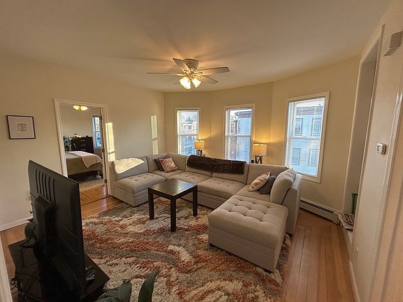 Sunny, three-bedroom, one-bathroom apartment in Lower Allston with modern appliances, hardwood floors throughout, and ceiling fans in every room. Unit-exclusive washer/dryer in basement (not coin-operated), two private balconies, and one off-street parking spot available for rent (100/mo). 20-minute walk from Harvard Square, 5-minute walk to Trader Joes, close to 66 and 70 bus routes. Available July 1st for 14-month lease. No brokers fee!