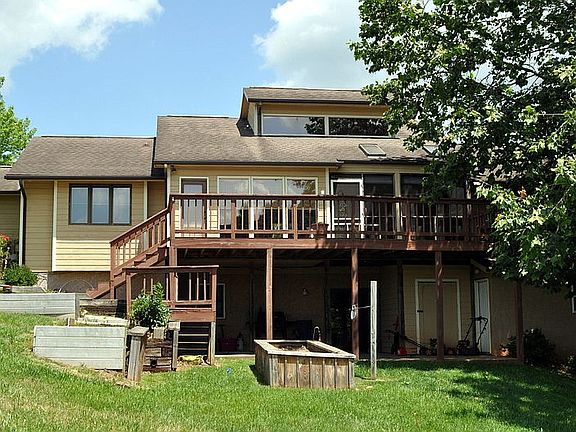 Available Sept 1 for Lease or Lease Option.Great location & great view! Cozy wood details surround you in this wonderful open, split plan home. Master suite with big walk-in closet & updated bath with big shower & dual sinks. Open great room with tall ceilings & fireplace opens to screened porch & then to the deck overlooking beautiful pastoral & long range views. Terrace level has big family room with wood stove, full bath, laundry, workshop or storage room & garage.