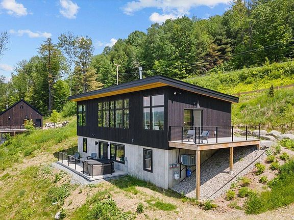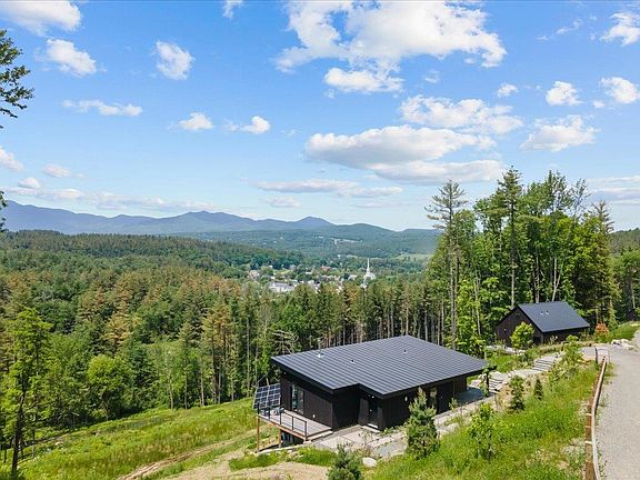 The Landry on Eloise Lane is a newly built, thoughtfully designed 3-bedroom, 2-bath contemporary home featuring high-end finishes and stunning views of Stowe Mountain Resort and Stowe Village. Wrapped in striking Shou Sugi Ban siding and surrounded by beautiful bluestone walkways, the exterior makes a bold first impression. Inside, a spacious mudroom with custom white oak built-ins, coat closet, and boot/glove dryer sets a practical and stylish tone. The vaulted great room offers an open-concept layout connecting the dining, living, and chef’s kitchen—complete with Thermador smart appliances, open shelving, and a large island. Two primary bedrooms provide flexibility, while a third bedroom with four custom built-in bunks is perfect for guests or kids. Bathrooms feature premium Kohler fixtures. The lower level includes a rec room, laundry, and a gear room for organized storage. Outside, unwind in the hot tub, gather around the fire pit, and enjoy the peaceful mountain setting. With solar power and Tesla battery backup, nearly all electric costs are covered. Less than a mile from Stowe Village, The Landry offers comfort, efficiency, and turnkey luxury—sold fully furnished and move-in ready.
