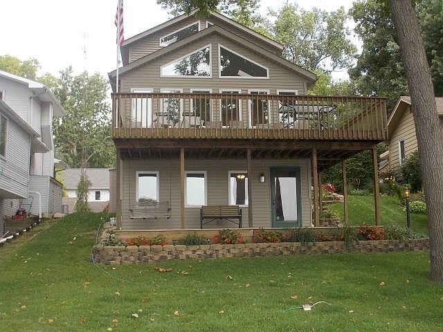 3 level house on Sechrest Lake front. Sandy beach, 3 bedrooms, 2 1/2 baths, 2 decks. All appliances stay. The property includes 2nd lot with a 24 x 32 pole barn. It has an electric garage door opener. Available is a 2000 Suncruiser pontoon boat with a 2013 60 HP, 4-stroke motor.