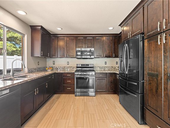 Welcome to this stunning turnkey home nestled in the heart of the highly desirable Foothill Ranch community! Situated on an oversized lot, this beautifully maintained residence features 3 bedrooms, 2.5 baths, plus a spacious permitted loft that has been converted into a 4th bedroom (bedroom not permitted) This home offers a flowing layout perfect for comfortable living and effortless entertaining. You will fall in love with the stunning updated kitchen, featuring rich espresso cabinetry, self closing drawers, granite countertops, high-end appliances, and a breakfast nook/dine-in eating area - a Chef's dream! The inviting family room boasts a cozy fireplace, custom built-ins and additional storage. A separate living room at the entry adds to the home's elegance, along with a charming powder room downstairs. Easy-to-maintain tile flooring throughout the lower level and wood plank vinyl flooring upstairs. Upstairs you will find a true private retreat as you enter the primary suite featuring a newly remodeled bathroom, that includes double sinks, and a gorgeous walk in shower. A walk-in closet, ceiling fan, and a balcony deck—perfect for unwinding while enjoying breathtaking views. Two additional nicely sized bedrooms share an updated Jack & Jill bathroom. The loft has been converted into a non-permitted bedroom, featuring closet space, custom built-ins, and shelving. The convenient upstairs laundry adds to the home's functionality. Additional highlights include: Recessed lighting, plantation shutters, and ceiling fans throughout the home. Freshly painted interior. New energy-efficient HVAC system & newer Tankless water heater. The newly installed Solar Panels offer energy efficiency and cost savings, making this home both eco-friendly and economical! Step outside to the spacious, recently renovated backyard, featuring a covered patio, separate grass area (Turf) plenty of space for entertaining.The front yard is designed for water conservation, with new turf, lush greenery, and a charming front porch. This home has an attached two-car garage, a large driveway, and excellent curb appeal—all within a picture-perfect, family-oriented neighborhood. Conveniently located just minutes from top-rated schools, a public library, shopping, dining, scenic hiking and biking trails, parks, and the Foothill Ranch community pool, spa, and clubhouse. Quick access to major freeways and Toll Roads. This home is a true gem—don’t miss your chance to make it yours! Welcome home!