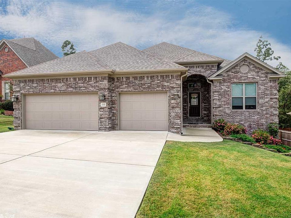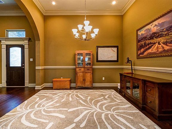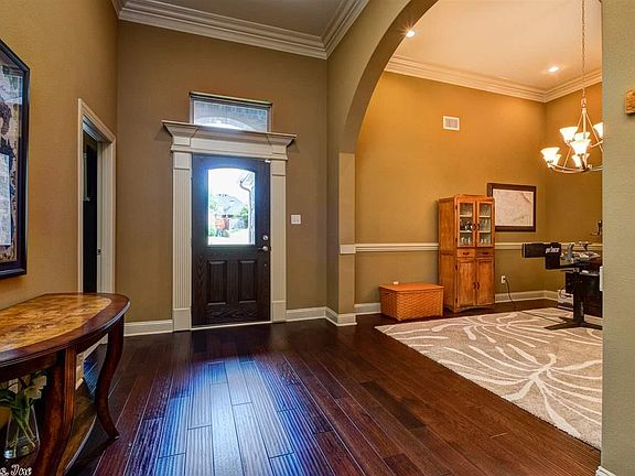 Beautiful ONE LEVEL home full of unique touches! Open Living-Kitchen-Casual Dining Floor plan..Archways Accent Formal Dining..Kitchen has Slab Granite CounterTops and Stainless Steel Appliances... Woodburning fireplace in Great Room... Multi-Head Walk-In Shower in Master Bath... Double Crown Molding, Indirect Lighting... GORGEOUS dark Hardwood Floors... Covered Deck.. 3 CAR GARAGE ... Huge fenced in back yard that backs up to greenspace! This one has it all. COME SEE!!!!