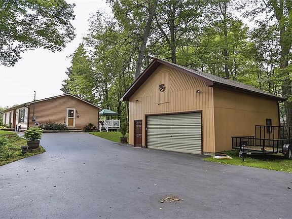 Own your very own private oasis that's conveniently located in the Churchville Chili School District! This cute updated ranch is set back from the road surrounded by 1.5 acres in a park like setting. There are 3BD and 2 full baths, an updated eat-in kitchen and full basement for storage or recreation, a 2 story heated garage with a workshop that has water, electric and plenty of storage. Upgrades include: New roof, windows, newer furnace, electric, Trex deck with hot tub, new low maintenance vinyl siding. There is absolutely nothing to do but move in and enjoy!