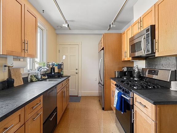 Chic and spacious 1 BR condo, occupying the entire second floor of a 3-story Greek Revival on a quiet tree-lined street in Cambridge’s highly sought-after Agassiz neighborhood – just blocks from Harvard Law and Science Center, Lesley University, and the Red Line at Harvard & Porter Squares. Formerly a 2 BR, now adjoined as an immense 1 BR (21 feet x 10 feet) with bamboo flooring, bay windows and recessed lights throughout. The open living-dining layout features pine floors and a bright kitchen with built-in breakfast bar, slate counters, maple cabinets, stainless steel appliances, and pantry. Tiled bath with jet tub and marble-topped vanity. Enjoy a private balcony and basement storage, around the corner from grocery store, coffee shop, and Petsi Pies! Urban living meets residential charm in a prime location known for walkability and classic Cambridge feel.