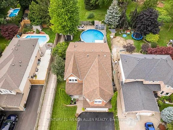 Spacious 2685 sq ft well kept home on a premium 50 * 135 ft lot with 27 ft heated above ground pool and brand new liner. Mature sought after neighbourhood. Parking for 3 cars in the driveway side by side. Beautiful winding hardwood stairs and hardwood floors throughout the main and upper floors. Main floor laundry room With 2 piece bath. Beautiful upgraded trim, wainscotting and crown molding on Main Floor and Staircase. Main floor boasts kitchen w/ S/S appliances incl. above range microwave, double pantry and upgraded cupboards. Separate living, dining and family rooms. 3 gas fireplaces in the home. Huge primary bedroom W/ 3 closets, 4 piece ensuite and gas fireplace. All other bedrooms each have 2 closets. Basement set up is perfect for a great in law suite or entertainers space. It includes laminate flooring, a kitchen w/ breakfast bar, 3 piece bath, living room w/ gas fireplace, very large bedroom, storage, and a separate room w/ window that could be a 2nd bedroom or office.