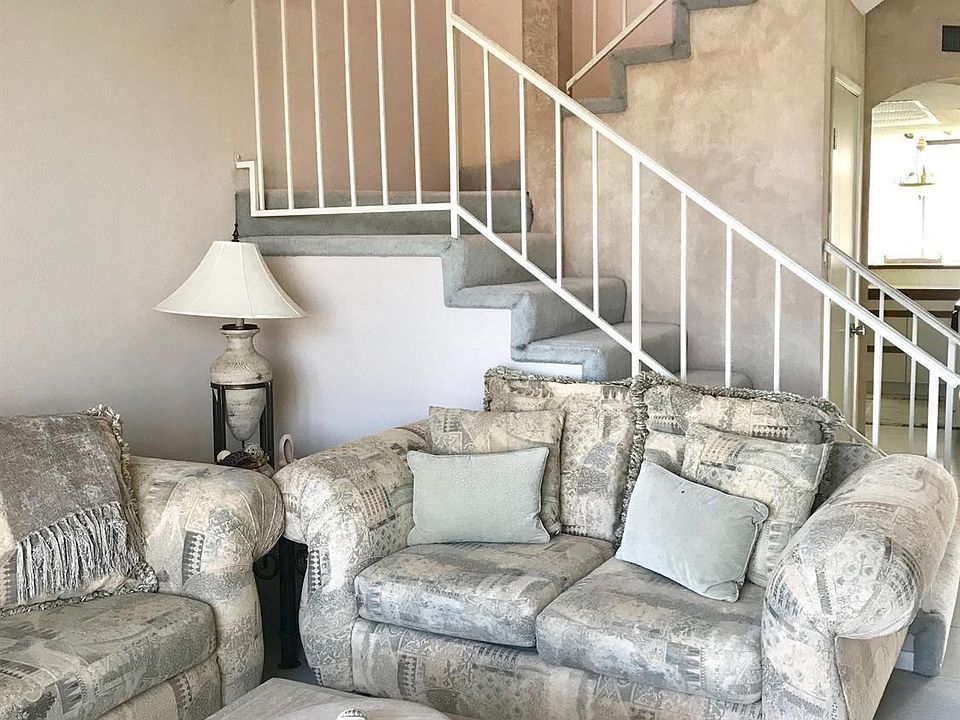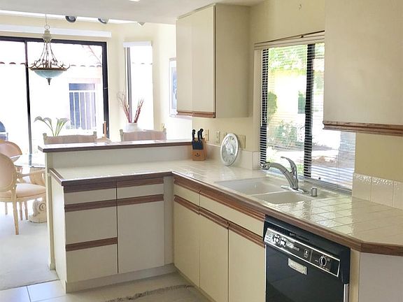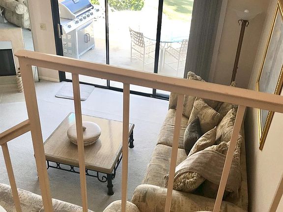 This 2 story condo is located on a beautiful lake. Enjoy the peacefulness & beauty. Home has two bedrooms and 2 1/2 baths. Bedrooms are upstairs with Master having a private patio with views of lake & mountains. It also has walk in closet, vaulted ceilings & dual sinks in bath. Guest bedroom has dual sinks & walk in shower. At top of stairs you have nice cabinets for misc storage. As you enter the home, your living area is straight ahead with slider leading to patio on lake. Enjoy the lake view inside or outside. You are steps away from (2) community pools. Living area has high vaulted ceilings, fireplace, spacious wet bar area. On main level has a 1/2 bath & laundry area, nice open foyer with closet. Kitchen is open with lots of cabinet storage. Dining area has slider to a private-gated patio that includes a BBQ and sitting area. There is a two car detached garage. Home being sold turnkey furnished per inventory.