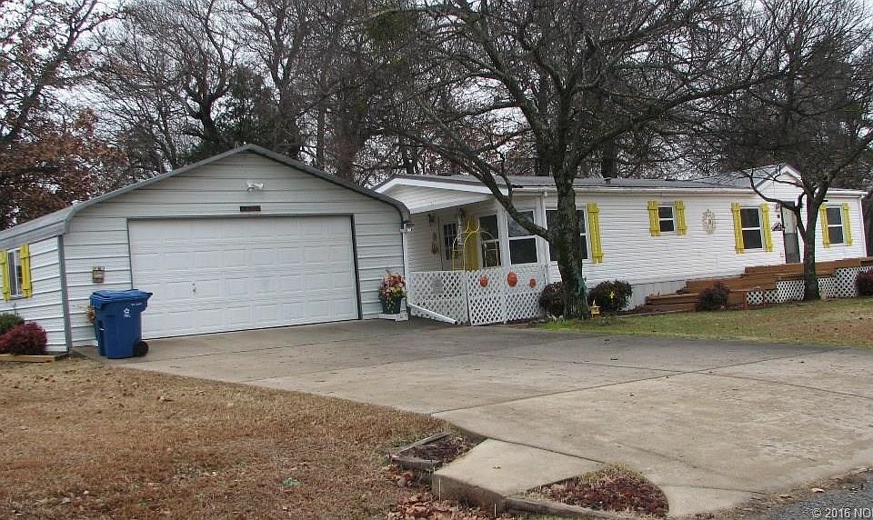 Immaculate manufactured home on three shaded lots. Also includes 24x30 garage with workshop and storm shelter and is close to boat ramp, lake access marina and golf course. Yard is fenced and has breezeway between house and garage,