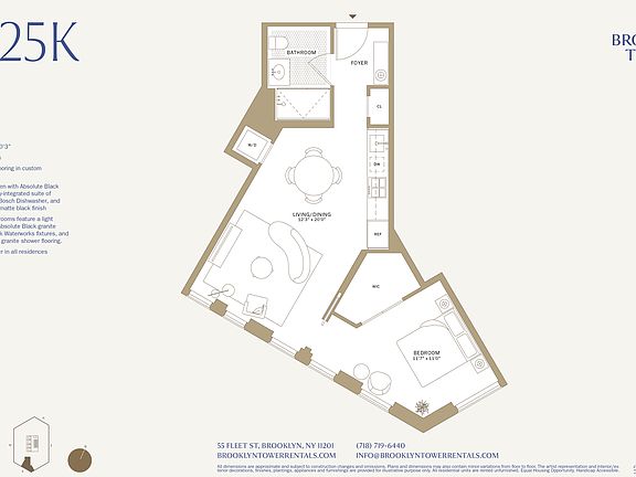 Immediate Occupancy. Welcome to The Brooklyn Tower! The tallest residential structure in Downtown Brooklyn. Designed by the award winning SHoP Architects, Brooklyn Tower is an extraordinary work of architecture and design with its cascading setbacks and soaring columns. Standing 92-stories high, Brooklyn Tower takes inspiration from the beautiful Dime Savings Bank of Brooklyn lifting the historic building's hexagonal form to pierce the sky in a dazzling new way. Rental residence 25K is an extraordinary 1bdrm layout featuring 10' lofty ceilings and full height windows which flank the open space offering unparalleled Southeastern exposures of the Brooklyn landscape. European white oak flooring in custom honey stain aline the residence creating and indulgent warmth. Brooklyn Tower features custom designed kitchens by Gachot Studios with Absolute Black granite countertops, fully integrated suite of Miele appliances with Bosch dishwasher and Waterworks fixtures in matte black finish. Bathroom suites showcase custom-designed details with light mahogany vanities and dolomite stone throughout. The amenity spaces at Brooklyn Tower are nothing short of remarkable. Providing access to a world-class lifestyle anchored by more than 120,000 square feet of exclusive indoor and outdoor amenities. Unique offerings include a first-of-its-kind partnership with Life Time Athletic Club, 75 lap pool and whirlpool, double-height poolside lounge and atrium, billiards room, library lounge, conference room, theatre with wet bar, living room lounge, children's playroom and the coveted Sky Park, boasting an open air loggia featuring a basketball court, foosball, playground, and dog run. The Brooklyn Tower is ideally located nearby beloved parks including Fort Greene Park, Prospect Park & Brooklyn Bridge Park. The location offers unrivaled transportation access to 13 subway lines, 11 commuter trains, and 22 Citi bike stations. To live at The Brooklyn Tower is to be immersed in a lifestyle unparalleled in the borough. Welcome home! Please contact the leasing office for additional information regarding Broker OP offering. 20 Application Fee, 1st Month's Rent and 1st Month's Security Deposit Pictures reflect typical apartment finishes and may not represent the actual apartment. Each apartment may vary. All property information presented is subject to errors, omissions, price and offering changes, changed property conditions and withdrawal of the property from the market, without notice. Any property information presented is for informational purposes only and shall not be binding upon the owner, landlord, leasing agent or any employee. Equal Housing Opportunity.