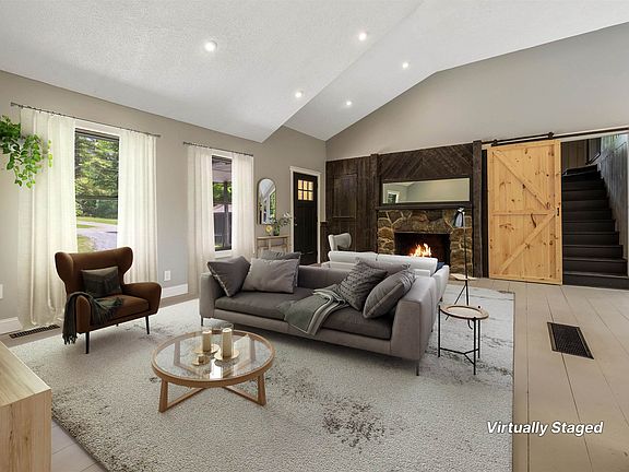 - Ceiling Fan(s), Hearth, Kitchen Island, Kitchen/Dining, Kitchen/Living, Primary BR w/ BA, Natural Light, Natural Woodwork, Vaulted Ceiling(s)