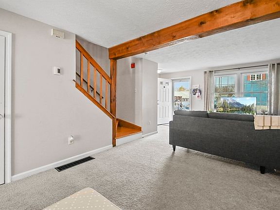 Nestled in a great location in the sought-after Fox Meadow community. This 2 bed 1.5 bath townhouse offers comfort and convenience. The inviting living/dining room boasts a large window that fills the space with natural light, complemented by a charming wood beam. The updated kitchen features stainless steel appliances, a cozy eat-in area, and a slider to the back composite deck. Upstairs, two spacious bedrooms share a full bathroom, while the basement provides additional storage, a laundry area, and a brand-new gas water heater. Enjoy the fantastic community amenities, including an inground pool, clubhouse, and tennis courts. All new carpet and interior paint - 2023. Two assigned parking spots in front as well as guest spots. Pet Friendly. Don't miss this opportunity to own a home in a prime location! Schedule your showing today.