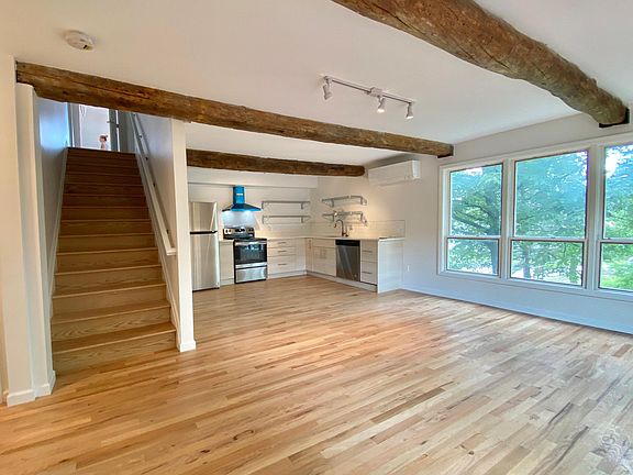 UNIT #2 FOXHALL//PRINCE is a brand new collection of modern, design-focused apartments in Kingston's Midtown Arts District. Unit #2 is available for lease on April 1. This unit is located in what was once the main house on the property, which was fully gutted in 2021 and thoughtfully redesigned with the utmost attention to detail. Unit #2, in a house set back from the street and perched on a hill, features ample private outdoor space, hardwood floors, washer/dryers, dishwashers, tiled tubs/showers, frameless cabinetry with quartz countertops, off-street parking and energy efficient appliances. Plus plenty of closet/storage space! This unit is a duplex and also offers an upstairs balcony off the master bedroom with fantastic views of the Catskills. This location is a perfect home base for exploring both Kingston and everything Ulster County and the Catskills have to offer. FOXHALL//PRINCE is a short walk from many of the Midtown Arts District's amazing dining/bar options, including Lis Bar, Beverly Lounge, Kingston Standard Brewing Co., Monkey Joe and Village Coffee & Goods, not to mention the area's many cultural offerings, galleries and shops. It's also two blocks from City Hall and the hospital, and less than a mile from the Rondout Waterfront District. Want to head Uptown? It's an easy 10-minute bike ride away! Please message with any questions if you're interested in being among the first residents of this exciting new addition to Kingston's Arts District! Owner pays for landscaping, trash and water, tenant pays for electricity. Each unit is guaranteed 2 off-street parking spaces. 1 month security deposit required.
