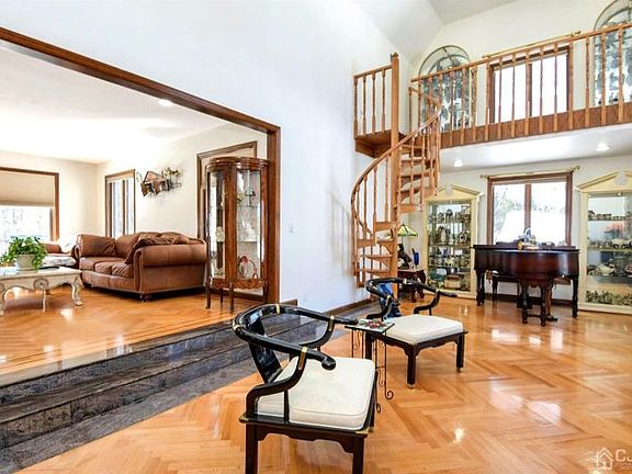 A terrific opportunity to have the privacy you crave, yet easy access to all highways and rail line. Down a tree-lined drive, a 4BR, 3.5BA home awaits. Beautiful soaring ceiling and dramatic stone fireplace in LR, custom h w flrs. Finished bsmt, w full bath. Barn has 12 stalls and loft. Could be used for storage.
