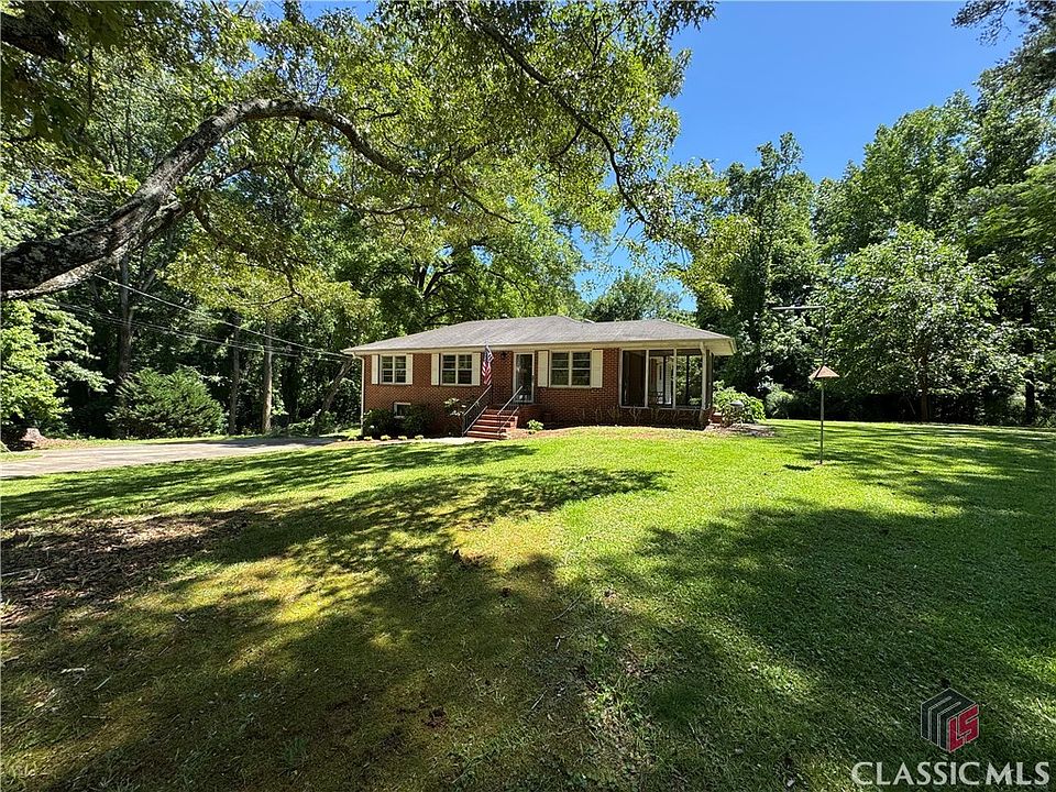 Make Memories Here! This brick, Mid-Century Modern, westside home features space inside and outside for people and activities. There is a large living room with hardwood floors which flows into the dining room. The L shaped kitchen is beyond, at the heart of the home, with pine cabinets and backyard view. The main level has 4 bedrooms and 2 baths including a dedicated owner’s suite. There is a peaceful screened porch off of the living room. Downstairs there is another tiled bath with soaking tub and a tiled mudroom. There is plenty of storage space and semi-finished space in the full basement including room for recreational space or even a 5th bedroom. Situated on almost 3 acres, the home overlooks several large grassy terraces, a small stream and lots of mature trees. There is plenty of space for a serious garden or urban farm. There is a 20 by 24’ metal covered structure, ideal for covered workspace or outdoor gatherings. This home has a brand-new sewer line and new plumbing supply lines. The home is located in the Belair Heights Community off Whitehead Rd and only minutes to Normaltown, the UGA Health Sciences Campus, Downtown, UGA, and the new Oak Grove Publix shopping center. Don’t miss out on this one-of-a-kind property!