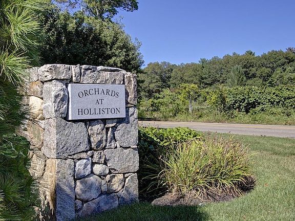 Fantastic opportunity for this sun filled and pristine young resale located at The Orchards in Holliston, which is not age restricted. This is a premier lot overlooking conservation land, with seasonal water views. Loaded with upgrades and high end finishes - chef's kitchen with stainless appliances, french country white custom cabinetry, granite countertops and large center island; dining room w/wainscoting & bay window; dramatic and sunny family room with gas fireplace, vaulted ceiling and large slider to the composite deck. Lovely first floor master with hardwood flooring, walk-in closet and granite bath. The second level features a 2nd master bedroom with full bath & walk-in closet, a large loft area, plus a large bonus room w/french doors, ideal for another bedroom, home office or recreation room. This is one of the few units with a walkout lower level, offering expansion possibilities. Close to commuter rail & major routes. Boston Magazine ranks Holliston schools #14 in MA.