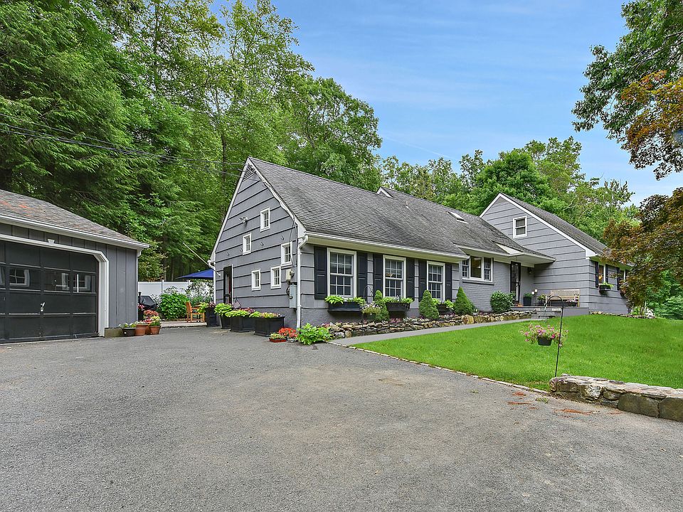 Updated Farm Ranch nestled at the top of a tree lined driveway. This private oasis is conveniently located close to town and train on beautifully landscaped property with a heated, gunite pool and hot tub. The large stone patio around the pool and side area make this property perfect for entertaining. The long driveway and large turnaround allow for plenty of parking. This home features a master bedroom suite, large country kitchen with brushed granite and stainless steel appliances, a large family room with custom built-in cabinets and large, expansive lawn.