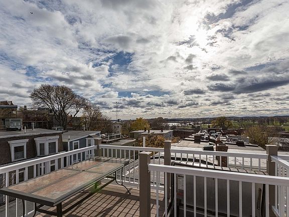 Come check out this well-maintained 2-bed, 1 bath condo that boasts a private roof deck overlooking the city with breathtaking views. The open-concept living area offers an easy-flowing layout and the gas fireplace creates a cozy atmosphere. The kitchen features black granite countertops, wood cabinets and stainless steel appliances. The high ceilings make the unit feel very spacious and hardwood floors throughout make you feel right at home. Central AC and in-unit laundry make this condo a must see. First month's rent, security deposit, broker fee due at lease signing.