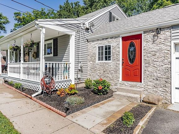 This home has some AMAZING CURB APPEAL with stone veneer & vinyl siding complemented w/ bright red doors, beautiful flower beds & covered front porch. Every inch of this home has been gone through & tastefully renovated w/ modern fixtures & furnishings. A great layout with plenty of space, this home features an attached one car garage, finished entryway with tile floor & wood burning stove, one bedroom w/ hardwood flooring, ceiling fan & full bath on the main level, two bedrooms upstairs w/ wood laminate flooring, ceiling fans & full bath, a bright & inviting living room w/ hardwood flooring & overhead lighting, a formal dining room w/ hardwood flooring & chandelier, an updated kitchen with tile floor & stainless steel appliances, and a finished lower level w/ fourth bedroom, separate living area & third full bath with laundry. Out back, the fenced in yard w/ deck & storage shed tie it all together. Don't miss your opportunity, this is a beautiful home for a very lucky buyer!