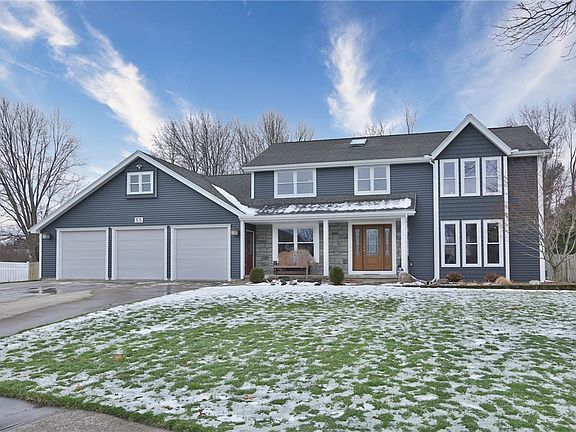 WELCOME HOME to this Beautiful and well-maintained home in the heart of Greece! This gorgeous colonial is situated in the end of the cul de sac. Brand new siding and newer windows are a plus! You will love the massive driveway w/ plenty of parking in the heated 3.75 car garage w/ water, and a large loft storage space. Once inside you will be welcomed by the roomy foyer which leads to a spacious living room that has a beautiful gas fireplace for the winter months. The kitchen has lots of storage, newer appliances, beautiful Quartz countertops with 2 islands. Enjoy your Breakfast in the Morning room off the kitchen overlooking the new trek deck w/ a fully fenced yard and firepit. Upstairs you will find 4 spacious bdrms! The Master suite offers a brand new stunning bathroom with an air whirlpool tub, rainfall shower, and a large walk-in closet. The fully finished basement is a great space to hang out and entertain with a kitchen, 1/2 bath and walk up stairs into the garage for a second egress. This home is very special- don't wait! OPEN HOUSE Saturday 2/11 from 12:00pm-1:30pm and Sunday 2/12 12:00pm - 1:30pm. Delayed negotiations on 2/13 at 3:00 pm offers due by 10 am.
