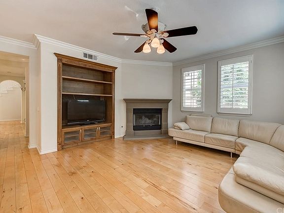 Experience the opportunity to own a home in the Woodbury Community! This bright and charming home features 4 Bedrooms + 1 bonus room can be used as a home office, playroom, or 5th Bedroom. Spacious floor plan offers MAIN FLOOR MASTER SUITE with walk-in closet, spa tub, shower room and door to the private backyard. Open kitchen with upgraded cabinets, granite counter top, breakfast nook, stainless steel appliances, upgraded cook top, and built-in refrigerator. Recessed lighting, crown molding, wooden shutters, ceiling fans, hardwood flooring throughout the main floor. Backyard with fruit trees, outdoor covered patio to entertain guests. Highly desirable location! Enjoy award-winning Irvine schools, resort-style Woodbury amenities, 7 pools and spas, patio and BBQ areas, tennis courts, parks, gardens, playgrounds. Jeffrey Open Space Hiking Trail located only 2 blocks away and Woodbury Town Center within minutes away.