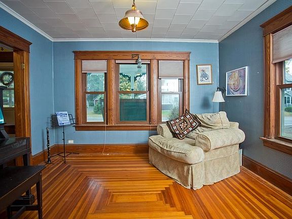 This charming two story farmhouse is conveniently located within a walk-able distance to town and the bike path. First floor offers kitchen with pantry, half bath, living room with fireplace, dining room and a beautiful front room that could be converted to a first floor bedroom. The wood floors gleam in every room giving a warm and welcoming feel to this home. The second floor has three large bedrooms, lots of closet space, pull downs stairs to attic space and one full bath. Relax on the gracious front porch or enjoy the private large fenced in back yard surrounded by perennial gardens. A one car garage and two driveways rounds out just some of the features this home has to offer. This is the one you waited all summer for!