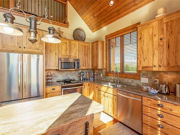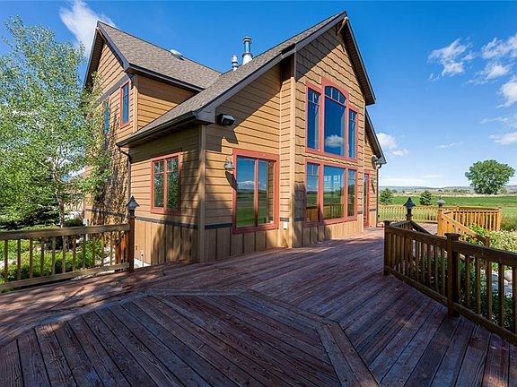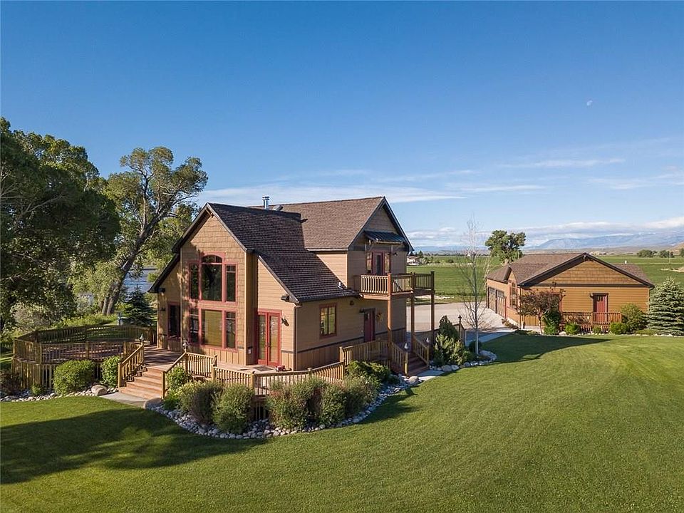 This incredible home sits on 19 acres of the Clarks Fork of the Yellowstone River and is surrounded by panoramic views of the Beartooth and Pryor Mountains. Large windows focus on jaw-dropping views of the surrounding area and local wildlife in a private and serene location. The modern kitchen boasts stainless steel appliances, hickory cabinets, Corian countertops, and an island perfect for gatherings. One bedroom on the main level and an exquisite bathroom with jetted tub. The upper level features a lofted family room, a bedroom, and another bath. Hardwood floors, vaulted pine ceilings and a gas fireplace are just a few of the custom, high end features. The exterior living spaces are just as impressive. The rushing river is the backdrop for memories made around the fire. A detached four-car garage incorporating a kitchenette, living space and 3/4 bath complete this Montana dream home.