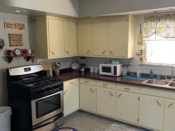 Cute as a button. Enter large eat-in kitchen with newer flooring, nice stainless steel appliances, good storage & counter space. Large living room leads to huge enclosed front porch. 3/4 bath with corner shower stall with newer vanity completes 1st floor. 2nd floor has gorgeous hardwood floors throughout with 2 large bedrooms both with closets & full bath. Basement is quite high and makes for additional storage space. Home sits on a large corner lot across from baseball field. Lot offers plenty of parking and there is a older barn/shed that can fit a smaller vehicle or additional storage. Some newer windows & has a metal roof.