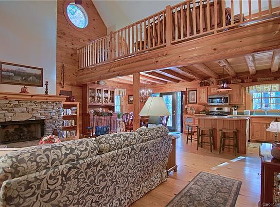 Situated on 2.8 acres, this beautiful log cabin home located in the heart of Saluda is just minutes to hiking, boating, waterfalls and rafting. This home would make an ideal vacation rental or year round mountain lover's dream home. Large front porch and expansive back deck for enjoying the natural and private surroundings. Wood floors throughout. Gorgeous vaulted ceilings. Curl up by this pleasing stone fireplace and enjoy the cooler weather. Master on main includes large walk-in closet and en-suite bathroom. Loft in second floor ideal for entertaining and spending time with friends and family while enjoying the lovely views. Come see this charming 3 bedroom/3 bath log home and fall in love with the mountain lifestyle.