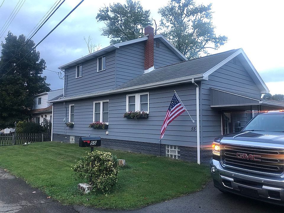Welcome home to 55 Guy St. Beautifully updated 3 bedroom 2 1/2 bath home in Hopewell Area School District with tons of natural light. Home has been completely updated including all new windows, new hot water heater, new electrical panel, interior and exterior painted, updated full bath and newly added 1 1/2 baths. Kitchen includes all new cabinets, granite countertops, tile backsplash, ceramic tile floor and SS appliances. Dining room includes a dry bar with extra storage and a pantry. First floor primary bedroom with on suite bathroom with double vanity. Refinished hardwood floors and laminate vinyl plank throughout the rest of the home. Large second bedroom with walk in closet, third bedroom or home office and full bath complete the second level. Large walkout basement including Pittsburgh potty and shower, new french drain and sump pump. Relax on the covered porch. Close to the Shell Cracker Plant, Pittsburgh International Airport and easy access to 376. Home Warranty included.