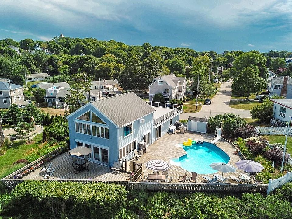 VACATION at HOME! Beautiful colonial set atop a bluff with direct panoramic coastal views of Boston Light, Boston Skyline and Harbor. This home is an entertainer's delight featuring open concept living, expansive decking with beautifully maintained grounds. Master bedrooms with ensuites on both first and second floors. Finished basement with endless possibilities. The private yard with in-ground pool provides ample space for outdoor entertaining. Storm shutters and back up generator will offer peace of mind during the winter months. Walking distance to commuter boat. No flood insurance needed.