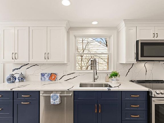 VALUE, NEIGHBORHOOD, & A SPARKLING BRAND NEW KITCHEN, what a combination. Thoughtfully designed by the current owners, who were not planning to sell, this sunny Cape style home offers a stylish, brand new kitchen, highly efficient in design, with plenty of work space & storage. Crisp white & navy cabinetry, stainless appliances, quartz counters, and a light, bright, dining area. Additional updates include a more open floorplan & recessed lighting. Hardwood flooring throughout. The first floor has a nice size living room, home office with plenty of natural light & easy access to the screened porch, plus 2 bedrooms with well-designed closets and a full bath. Upstairs has an additional 2 bedrooms & full bath. Lower level is partially finished with space for future improvement. Set on a side street, in a bikeable and convenient neighborhood known as "the Manor." Backyard with paver patio. Enjoy a quick stroll to Kineen Park or the Minuteman Bike Path or Diamond Middle School.