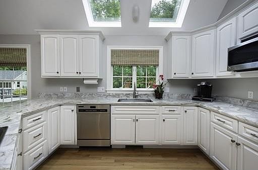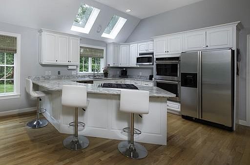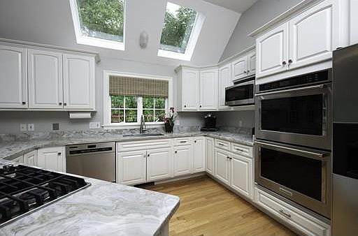 Tucked away in the east village on a cul de sac, this is a perfect house for entertaining, featuring a well-lit backyard resort with heated pool, hot tub and fully finished basement with a full size bar with down-draft grill and half bath. The bright kitchen is open concept with high ceilings and skylights, leading onto a covered deck overlooking the pool and backyard set on over 6 acres. This four-bedroom home has 3 full and 2 half bathrooms with hardwood floors throughout. The master bedroom has coffered ceilings, a walk-in closet and ensuite bathroom. There is a second large ensuite bedroom with a picture window that brings in lots of light. There are many extras--electric dog fence, irrigation, generator and security system. Move in this summer!