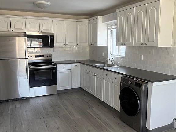 This 3 bedroom, 2 full bath 2nd floor apartment offers great space with living room, large, updated eat-in kitchen w/stainless appliances, ample cabinet space, pantry + washer/dryer combo unit. Off street parking for 1 car. Landlord pays for heat, water, landscaping, and snow removal. Near restaurants, shops, marinas and Manorhaven Beach Park/Pool. Landlord pays for heat, water, landscaping and snow removal. Tenant pays for all other utilities. Subject to credit score/income verification and landlord approval. Small pet may be considered.