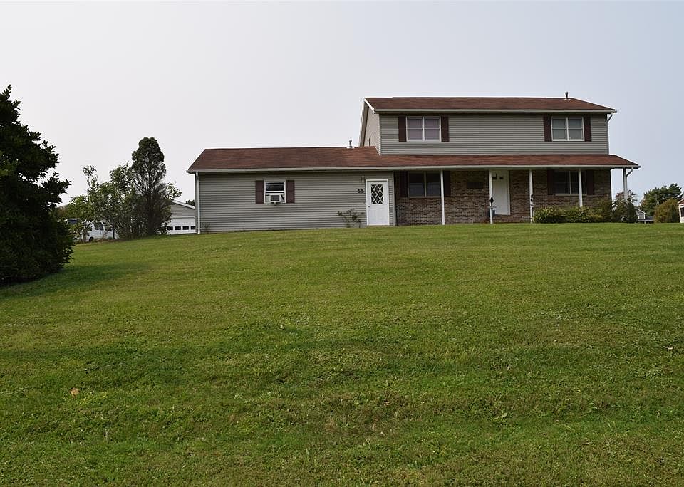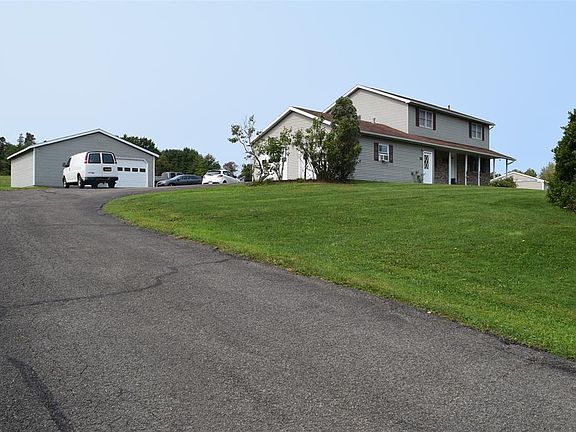 Views and a very nice 3 bedroom, 3 and a half bath home on over 2 and a half acres is what is offered here! There are 2 attached and 2 detached garages with a big circle driveway for tons of parking! There's also another big garage or glorified shed for storing lawn/garden equipment. This home offers a large eat in kitchen with center island, lots of cabinets and counter space, a new floor and sliders out to a back open deck to view the lovely private back area and views! There's a first floor laundry room and half bath. Interior doors are all solid 6 pocket doors with hardwood trim, plaster swirled ceilings and huge master suite with walk in closet. Lots of closet space and storage. Big basement with a full bath. The Master Bedroom has a huge walk in closet and big Master Bath with a garden tub and sky light!