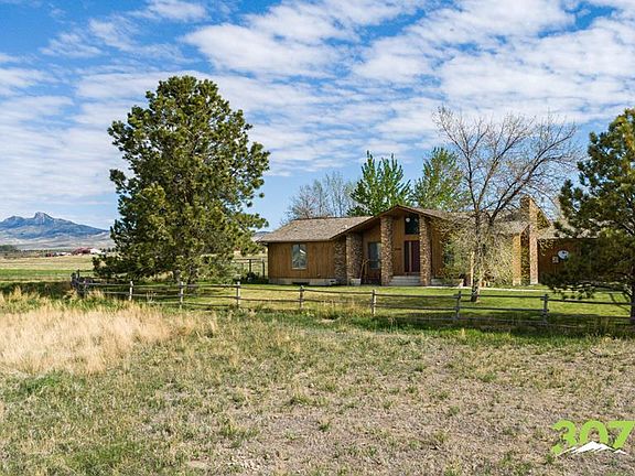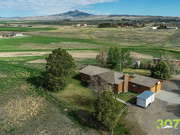 Peaceful out-of-town property w/ magnificent mountain views, large back deck, mature trees & landscaping! Don't miss this rare opportunity to own a 6 acre horse property near BLM access in the highly desirable Shapar-El Estates Subdivision just minutes north of downtown Cody! The house features rustic brick/cedar exterior and boasts 5 bedrooms+2 bonus rooms, 3 bathrooms and dual level fireplaces.
