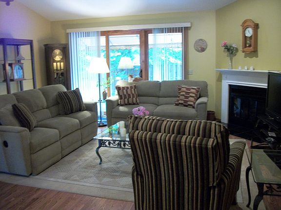 Newer furnace, A/C, water heater, and humidifierNewer appliances, french door refrigerator, gas stove, microwave and dishwasher, front-load washer and dryer.Tub in master bath, walk-in shower in front bathNewer laminate floor in kitchen, family room, hall and front bathNewer windows and sliding patio door & roofPartially finished basement can be used as 3rd bedroom with large closetCondo fee includes roof, driveway, exterior maintenance, lawn care and snow removal