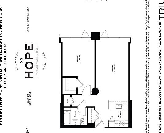 55 Hope is a timeless nod to mid-20th century Brooklyn. Featuring unique loft living in a synthesis of classic architecture and modern amenities, residents can enjoy the sophistication of years past with the convenience of today. Carefully crafted interiors were created to highlight the original features of the building, including soaring, exposed concrete ceilings and large windows that frame the classic urban and Manhattan views. Wide plank oak floors, 8 foot solid core doors, white glass counter tops, imported Italian chef''s kitchens with stainless steel appliances, Kohler fixtures and spa-like bathrooms with Zuma soaking tubs, Toto toilets and washer/dryers add a clean elegance to the charm of the warehouse details retained. Several units also feature home office spaces. 55 Hope is not just a place to live it's a lifestyle chosen by the discerning renter seeking distinct NY loft living with an elevated twist. Residents and guests are welcomed by a dramatic lobby lounge surrounded by bamboo gardens. Elevators grant residents ease of access to their lofts and the 8,500 SF landscaped roof deck offering panoramic views and opportunities to soak in the rays or relax with some outdoor yoga. A state of the art fitness center allows residents to stay fit. A virtual doorman and resident superintendent offer security without sacrificing privacy. Bicycles and all other items may be stored in one of the many dedicated private storage spaces. Located in the midst of modish, New York City lifestyle, 55 Hope is within close proximity to four public playgrounds, three community gardens and some of Williamsburg's best known parks, including McCarren Park, which is popular for its concerts, festivals and pool. Dozens of Zagat-rated restaurants decorate the neighborhood. While it's difficult to imagine running out of spots to try in the neighborhood, the G (Metropolitan Ave) and L (Lorimer St) trains are each 3 blocks away, with the J, M, Z (Marcy Ave) station just a few blocks further.