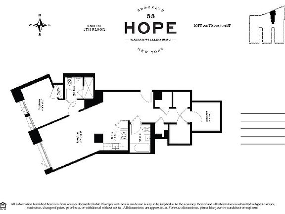 55 Hope is a timeless nod to mid-20th century Brooklyn. Featuring unique loft living in a synthesis of classic architecture and modern amenities, residents can enjoy the sophistication of years past with the convenience of today. Carefully crafted interiors were created to highlight the original features of the building, including soaring, exposed concrete ceilings and large windows that frame the classic urban and Manhattan views. Wide plank oak floors, 8 foot solid core doors, white glass counter tops, imported Italian chef''s kitchens with stainless steel appliances, Kohler fixtures and spa-like bathrooms with Zuma soaking tubs, Toto toilets and washer/dryers add a clean elegance to the charm of the warehouse details retained. Several units also feature home office spaces. 55 Hope is not just a place to live it's a lifestyle chosen by the discerning renter seeking distinct NY loft living with an elevated twist. Residents and guests are welcomed by a dramatic lobby lounge surrounded by bamboo gardens. Elevators grant residents ease of access to their lofts and the 8,500 SF landscaped roof deck offering panoramic views and opportunities to soak in the rays or relax with some outdoor yoga. A state of the art fitness center allows residents to stay fit. Bicycles and all other items may be stored in one of the many dedicated private storage spaces. Located in the midst of modish, New York City lifestyle, 55 Hope is within close proximity to four public playgrounds, three community gardens and some of Williamsburg's best known parks, including McCarren Park, which is popular for its concerts and festivals. Dozens of Zagat-rated restaurants decorate the neighborhood While it's difficult to imagine running out of spots to try in the neighborhood, the G (Metropolitan Ave) and L (Lorimer St) trains are each 3 blocks away, with the J, M, Z (Marcy Ave) station just a few blocks further.