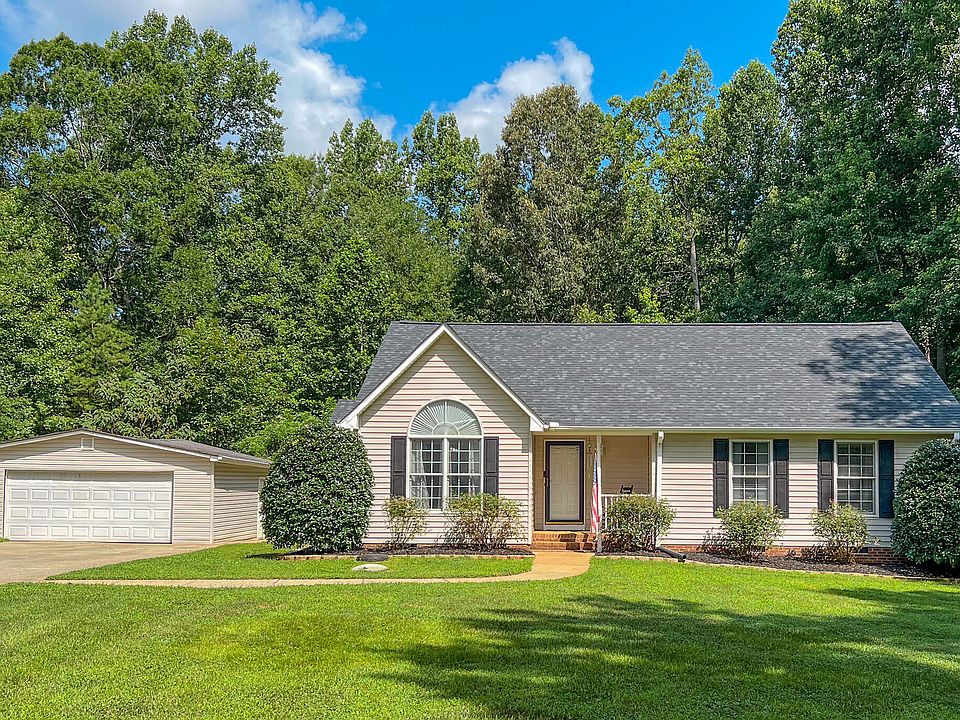 Spacious Single Story Living Nestled in a Cul-de-sac in Wonderful Timberlake Neighborhood, Foxcroft! So much Living Area to Spread Out with a Family Room AND Living Room featuring a Cozy Gas Fireplace! Dining Room that can be used as a Study, Play Room, Flex Space, Etc! Eat In Kitchen with Tile Backsplash, Beautiful Fixtures and Stainless Appliances! 2 Car Detached Garage and a Brand New Deck to Soak up that Private Backyard! HVAC NEW in 2024! Roof 2021! NO Carpet throughout! Nice, Big Utility Room with a Sink is accessible through an Eye Catching Barn Door! 55 Hunters Lane POPS - come see it before its gone!