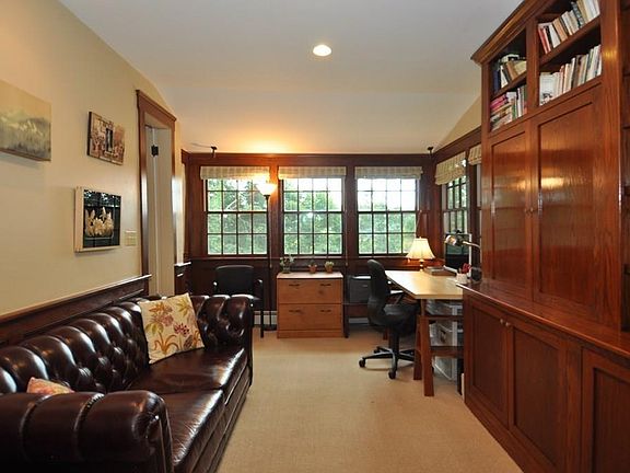 Farlow Hill-This stately, updated, slate roof Colonial has wonderful space, arch. details, numerous vistas & today's amenities. A grand foyer leads to a formal dining rm to the left, floor-through living rm to the right with a fireplace & French doors leading to a spacious rear balcony. Straight ahead is a rustic family rm/office w/glass doors, dark stained oak custom shelves & nice views. The Poggenpohl designed kitchen has a Wolf range, SubZero fridge, pantry & dining area. Off the kitchen is a mudroom & powder room. An elegant staircase leads to the 2nd floor landing, 2 bedrooms & a full bath, as well as a master suite w/ 4-piece en suite bath, dressing room/office & lovely rear deck. Enjoy tree top sunsets. The 3rd floor has an office space, full bath, bonus room/studio, & guest bedroom. The walk-out finished lower level has a terrific family/rec. room & sliders to a spacious back yard perfect for relaxing, al fresco dining & entertaining, a full bath and kitchenette. A must see.