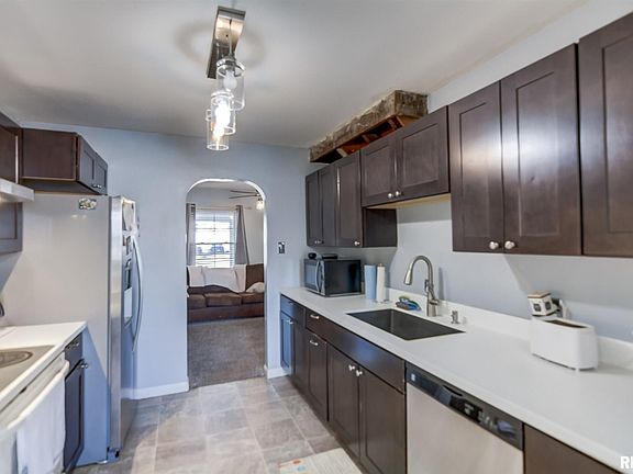 This 1463 square foot home features a newly remodeled kitchen with solid surface counter tops and granite sink. One bedroom and one full bath on the main level. Two up with shared half bath. Hi-Eff furnace. Front and back porches are covered. Fenced back yard. Basement.