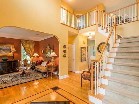 Regal Luxury at it's best! This estate offers 5 bedrooms/3.1 baths with high end finishes and details through out. Gleaming hardwood floors, two sided fireplace to enjoy in your family room and dining/kitchen area. Stunning master suite with sitting area to enjoy the private fireplace. Basement is finished with full bathroom, gym, office and 2nd family room. Entertain the neighboorhood with an exclusive theater room and bar area. Almost 3 acres of privacy to enjoy your picturesque views and salt water pool. 3 car garage with plenty of parking. Sought out Pond Hill Location that offers spacious, rural feel yet centrally located to get to Albany in minutes. EG Schools, Public water, sewer and natural gas heat.