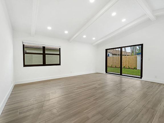 Gorgeous 3BR/2BA w/ 2 car garage, one story, single family home has it all! The stunning kitchen has beautiful marble counters & backsplash, decorator touches, all new appliances & loads of storage. The entire home has new 18 x 48 porcelain wood plank flooring throughout. The spacious living room w/ vaulted ceilings opens to the patio & large backyard. Both bathrooms have beautiful vanities, marble walls & champagne gold finishes. The home is complete w/ all new impact windows, doors & hot water heater. The roof & A/C were replaced in 2019. The large private fenced yard has two patios giving you a place to sit and relax enjoying our South Florida weather all year round. The entire home has been completely landscaped, front & back with all new irrigation. Interior lot/no road noise.