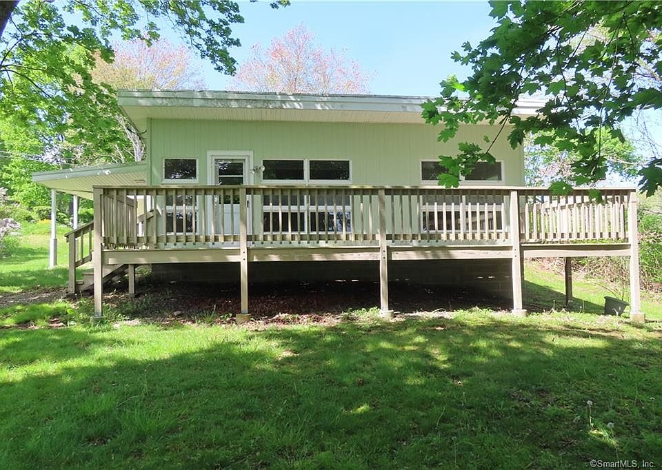 Tiny Houses are all the rage, so come take a look at this one!! The location alone will make this home worth at look. Walking distance to all that downtown Mystic has to offer. Walk to the water! This home was moved to its present location from Long Pond in the 1960's. The inside is adorable with a living room with vaulted ceiling and a wood burning fireplace. The kitchen could use some remodeling as it is like a summer lakehouse kitchen. Expansive deck overlooks private backyard. The house does have exterior peeling paint and some deferred maintenance. Has been a rental property for many years. Being sold "AS IS".