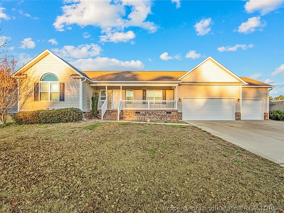 Beautifully maintained ranch style home in a perfect country setting, convenient to Fayetteville, Fort Bragg, 295 and plenty of local dining and shopping; This 3 Bedroom/2 Bath home sits on a 1/2 acre lot and has a 3rd car garage; All bedrooms including master suite are on the main level of the home, along with great room, dining room, large kitchen with eat-in area w/bay window; Upon entering the home you'll notice the beautiful hardwood floors throughout the foyer, dining room and great room, ceramic tile in the kitchen; master suite has trey ceiling, double vanity, garden tub, separate shower and large walk-in closet; Large backyard for fun all four seasons of the year